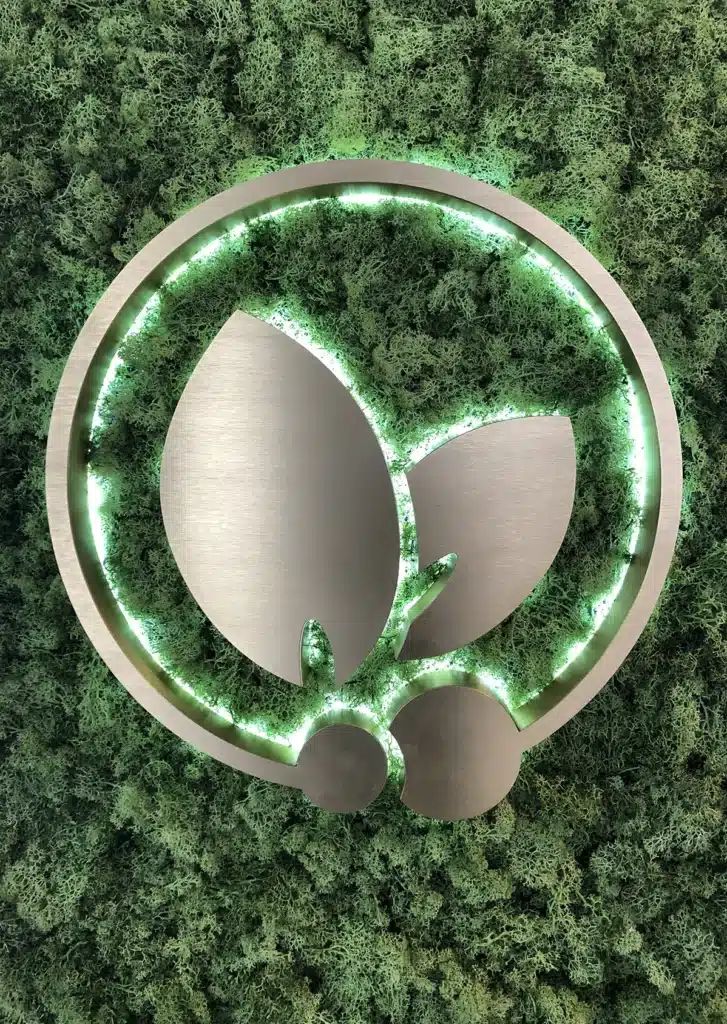 Je nach Ausführung verwenden wir durchgefärbte Acrylmaterialien oder nach RAL- bzw. Pantone lackierte 3D Logos aus Acryl, Aluminium oder Edelstahl.